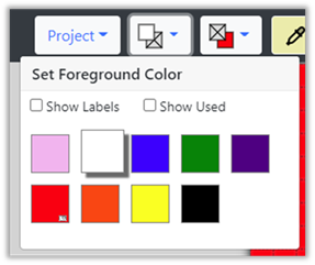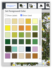 You may also open a Floating Palette from the Display > Show Floating Palette option. This places a moveable window containing the foreground and background color selections. You may select foreground and background colors from the Floating Palette instead of using the foreground and background dropdowns on the top toolbar.