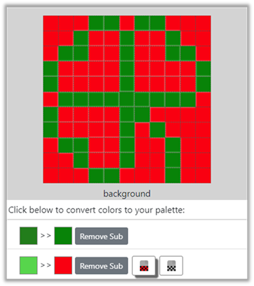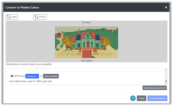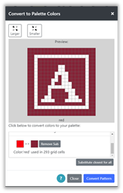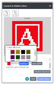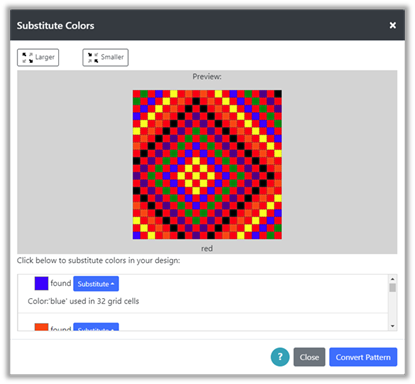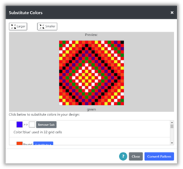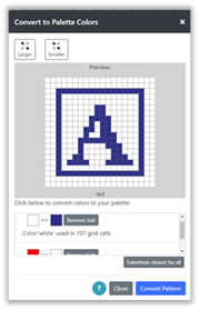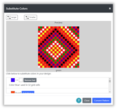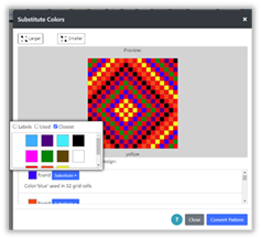 Color substitution is available, to aid in converting a design from one palette to another or just to switch one color for another in your open project.