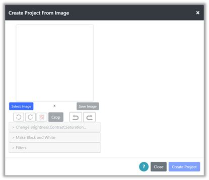This project can be reloaded anytime by selecting the Project ΰ close option or pressing the refresh button in your browsers toolbar. The refresh button may clear other areas of the editor, such as the currently loaded image in the Create from Image option. Use the Project ΰ close option in this case.