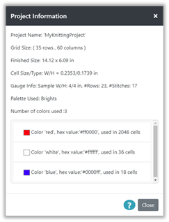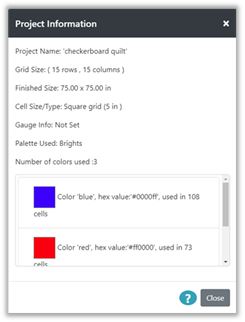 To see the current projects information, such as grid size, cell size and colors currently used, select the Project Info option.