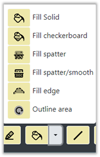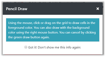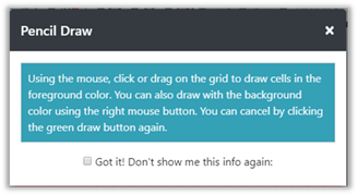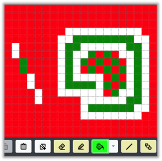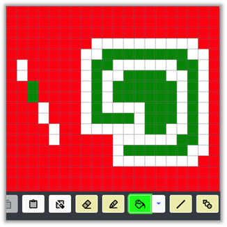 The drawing tools include a pencil and eraser, for free-hand drawing, as well as a line tool, shape tool, fill tools, outline area tool and text tool. Line size can be modified from 1 to 10 cells in width, to make drawing on larger grids easier. Undo/Redo is unlimited for all drawing tools.