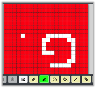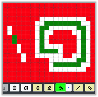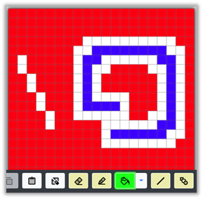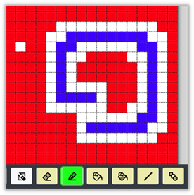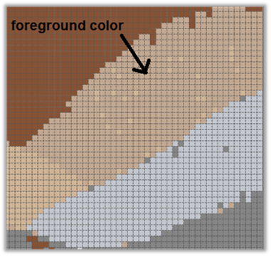 Drawing tools use the selected foreground and background colors which are shown on the top toolbar. Foreground color is usually the color used to draw, while the background color is used to fill the grid initially and to erase with.