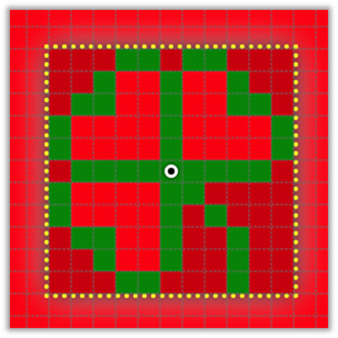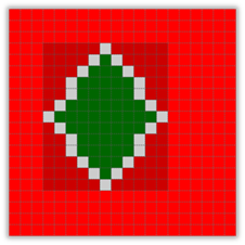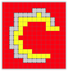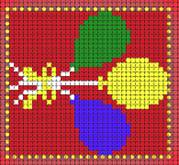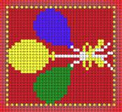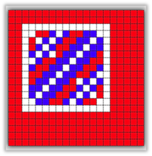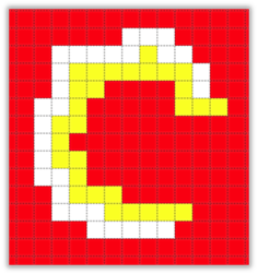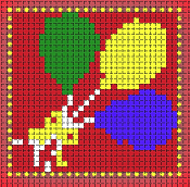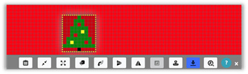 When the designer is opened, a default project is created. This project contains a grid of 20 x 20 cells where each cell is square. The Brights palette is automatically selected and the background filled with red. The default project makes it easy to get started editing right away. Use this project for practice with the drawing tools.