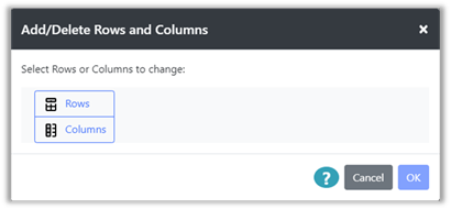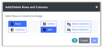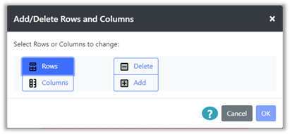 At the top of the dialog the current number of rows and columns are shown. These values are fixed and are for reference as you select to add or delete columns in the next section of the dialog.