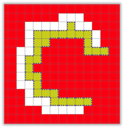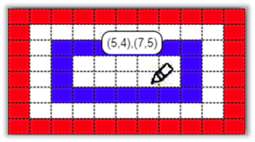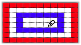 In the example above we did not change any existing picture that might have been drawn on the grid before the number of rows and columns were changed. At the bottom of the Grid Size dialog is a checkbox labeled Scale Existing Drawing to Fit. When this checkbox is selected, any picture drawn on the original grid will be resized to the new number of rows and columns. That means it will be skewed or stretched to fit the new size grid. This feature can be used to resize any drawing you have on your grid.