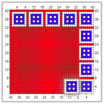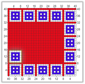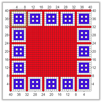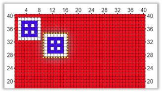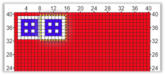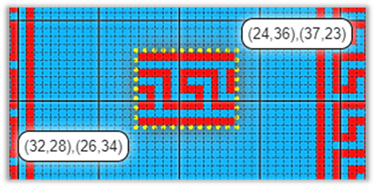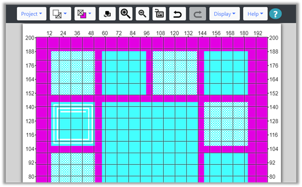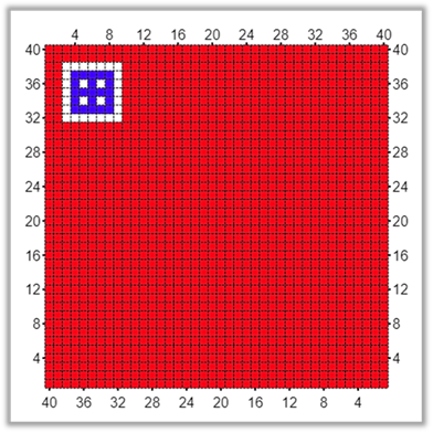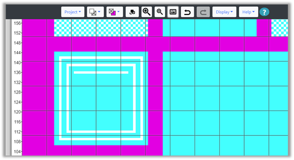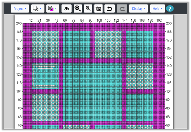 In this example we are working on a design that is 200 x 200 cells. We are zoomed into a small area we are working on.