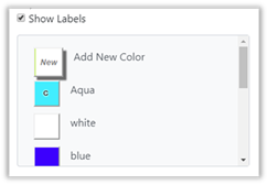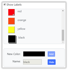 Color labels can be shown by clicking the Show Labels check box above the color list. You can search for colors in the list using the browsers text search for the page. Often this is initiated with Ctrl+f.