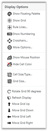 The Grid Size option in the Display menu allows you to add or subtract rows and columns from the edges of your grid. When you select the Grid Size option, the Grid Size dialog is displayed.