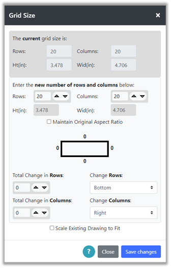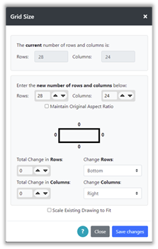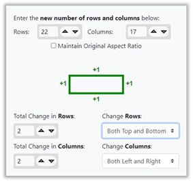 Now suppose after working on our design, we would like to add 1 row and column to all sides of the grid. We open the Grid Size dialog again and reduce by 2 rows and 2 columns in total. Then select Change Rows to be Both Top and Bottom and Change Columns to be Both Left and Right.