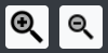The Zoom In and Out buttons are located on the top toolbar. Zoom In makes the grid larger (+), zoom out makes the grid smaller (-).