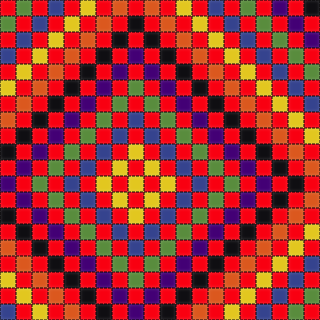 c) You have a pattern for a latch hook rug, but now you want to create a similar pattern for cross-stitch so that you can make a wall-hanging to match the rug. Open your latch hook project, do a Project > Save As to make a new place for the cross-stitch project. Then select Display > Cell Size/Type and change the type to cross-stitch; select the cloth type. Click on Save Changes. In this case you would likely want to select a different palette. You can select Project > Palette, then select something like DMC floss and click Use Palette and follow the instructions to convert to that palette.